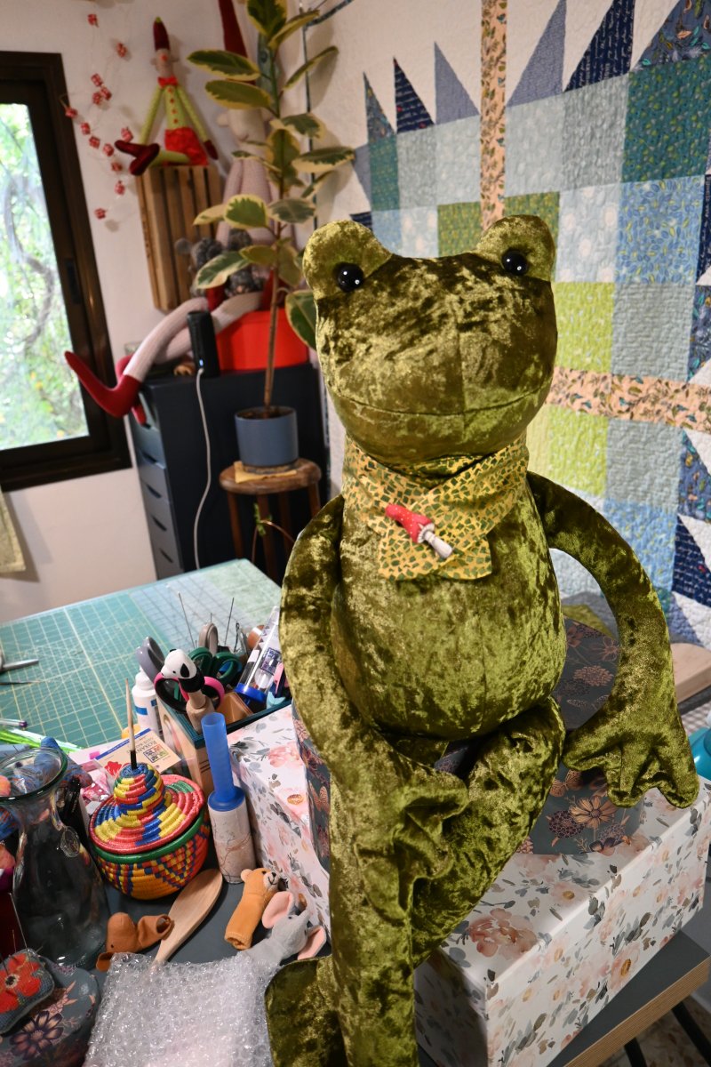 Jerry the Frog is a big plushie approx. 30" (76 cm) tall when standing. He is the perfect sewing project for those who are looking to impress family members and friends with the cuddliest heirloom toy. Jerry the Frog is so cute that he will inevitably become any child's inseparable buddy and the best of nighttime companions.