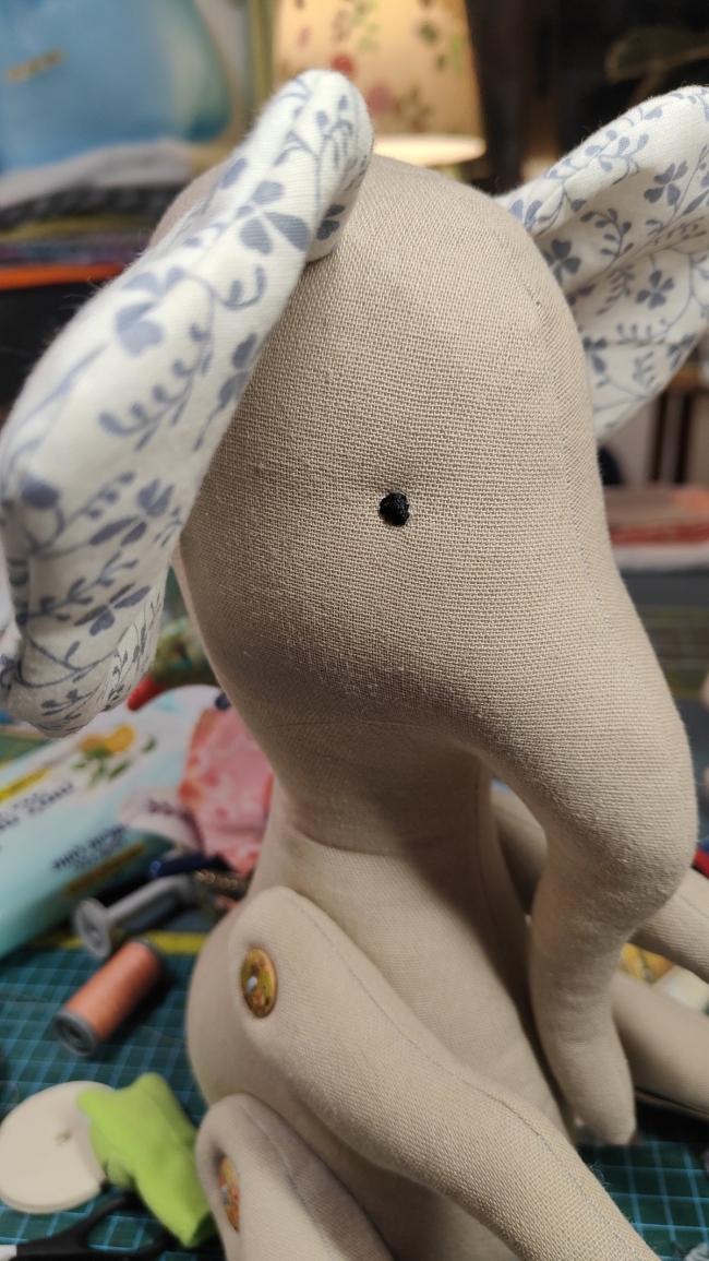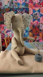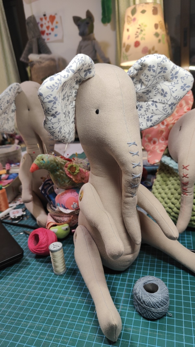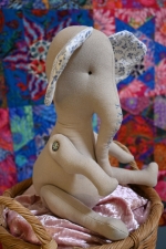 The pattern works well with linen fabrics, and with scraps of cotton for the ears. Old jeans will work perfectly as well. Ollie the Elephant can be made into a lovely memory elephant by using old clothes.